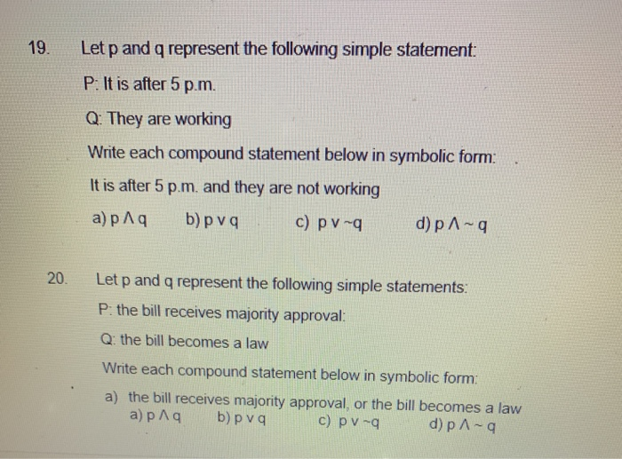 Solved 19 Let P And Q Represent The Following Simple Chegg Com