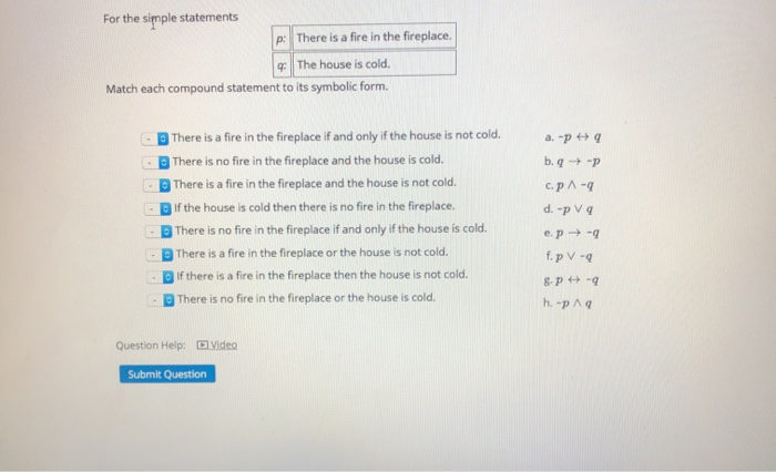 Solved For The Simple Statements P There Is A Fire In The Chegg Com